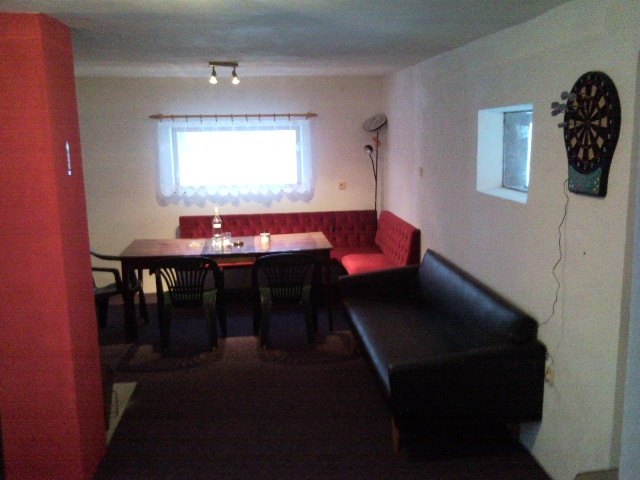 Je zde k dispozici TV, SAT, HI-FI a elektronické šipky.Spol. místnost je